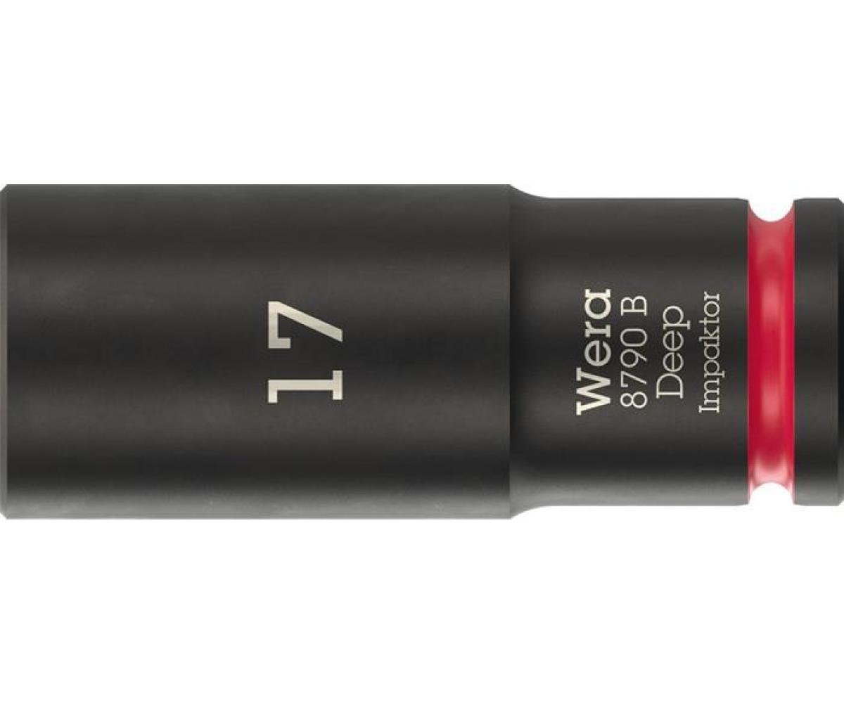 Weitere technische Eigenschaften · Außenmaß (d1): 26,0mm · Durchmesser hinten (d2): 23,0mm · Icon links: Außensechskant · Icon rechts: Aussenvierkant · Schlagschrauberfest: ja · Take it easy Nuss: ja · Steckschlüsseleinsatz · 8790 B Impaktor Deep 3/8 · Zoll 17mm L.63mm WERA ·