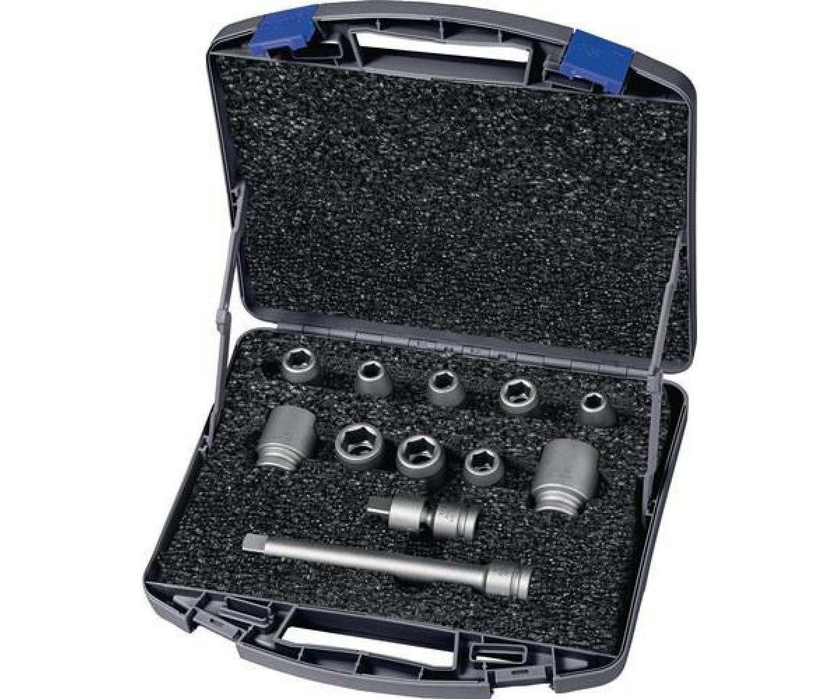 Bestückung Art.-Nr. 4000 820 987 / 720 SG 12 OL: je 1 Kraft-Steckschlüssel-Einsatz 9 / 10 / 11 / 13 / 14 / 17 / 19 / 22 / 24 / 27 mm 1 Kraft-Kugelgelenk 1 Kraft-Verlängerung 175 mm Lieferung im KunststoffkofferTechnische Daten