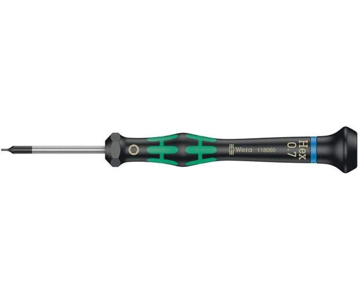 Weitere technische Eigenschaften · Abrollschutz: ja · Black Point Spitze, rund: ja · Grifflänge: 97mm · Klingenlänge (in Zoll): 1 9/16"Zoll · Kraftform Micro drehbare Kappe: ja · Kraftform Micro Kraftzone: ja · Kraftform Micro Präzisionzone: ja · Kraftform Micro Schnelldrehzone: ja · Take it Easy Kraftform Micro Schraubendreher: ja · Elektronikerschraubendreh · er 2054 0,7mm · Klingen-L.40mm Hex-Plus ·