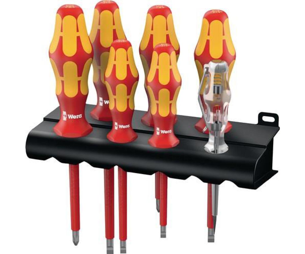 Inhalt: je 1 Schraubendreher für Schlitzschrauben 2,5 x 80 / 3,5 x 100 / 4,0 x 100 / 5,5 x 125 mm je 1 Schraubendreher für Schrauben mit Kreuzschlitz (Ausführung siehe Tabelle) Gr. 1 x 80 / 2 x 100 mm 1 Spannungsprüfer 3,0 x 70 mm Lieferung komplett mit Wandhalterung