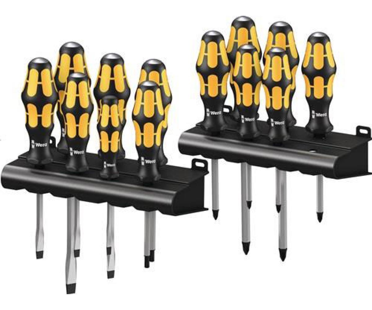 zum Schrauben, Meißeln und Stemmen · mit Mehrkomponenten-Kraftform-Griffen mit Abrollschutz · durchgehende 6kant-Klingen · Schlagkappen · Sechskantansatz für Schraubenschlüssel (ab 4,5 mm) · nicromatt, BlackPoint-Spitze Inhalt: je 1 Schraubendreher für Schlitzschrauben, 3,5 x 80 / 4,5 x 90 / 5,5 x 100 / 7,0 x 125 / 9 x 150 mm je 1 Schraubendreher für Schrauben mit Kreuzschlitz (PH) Gr. 1 x 80 / 2 x 100 / 3 x 150 mm je 1 Schraubendreher für Schrauben mit Kreuzschlitz (PZD) Gr. 1 x 80 / 2 x 100 / 3 x 150 mm je 1 Schraubendreher für Schrauben mit Innen-TORX®-Profil Gr. T 20 / 25