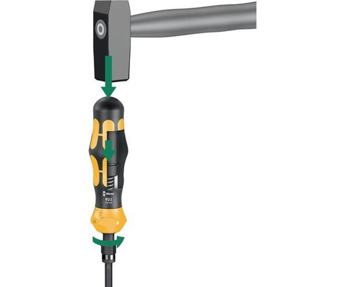 mit Wechselklingen und Handhalter mit Schlagkappe und zuschaltbarer Schlagschraubfunktion · vereint die Vorteile von manuellen Schlagschraubern, Kompaktwerkzeugen und Schraubendrehern mit durchgehender Klinge Besondere Produktvorteile: - auch zum Lösen hartnäckiger Schraubverbindungen - mit zuschaltbarer manueller Schlagschraubfunktion - Hammerschlagimpuls wird in eine Drehbewegung mit einem Lösemoment von ca. 25 Nm umgesetzt (verlustfrei über eine durchgehende Klinge) - umschaltbare Schlagdreher- und Schraubendreher-Funktion Inhalt: 1 Kraftform Plus Handgriff mit Schlagkappe und zuschaltbarer Schlagschrauberfunktion (L. 163,5 mm) je 1 Schlagschrauberbit für Schrauben mit Kreuzschlitz (PH) Gr. 1* / 2* / 3* je 1 Schlagschrauberbit für Schrauben mit Kreuzschlitz (PZD) Gr. 1* / 2* / 3* je 1 Schlagschrauberbit für Schrauben mit Innen-TORX®-Profil Gr. T 15* / 20* / 25* / 30* / 40* je 1 Schlagschrauberbit für Schrauben mit Innensechskannt-Profil Gr. 3* / 4* / 5* /6* mm je 1 Bit für Schlitzschrauben Gr. 4* / 5,5* / 6,5* mm 1 Klettstreifen 50 x 120 mm * 70 mm lang