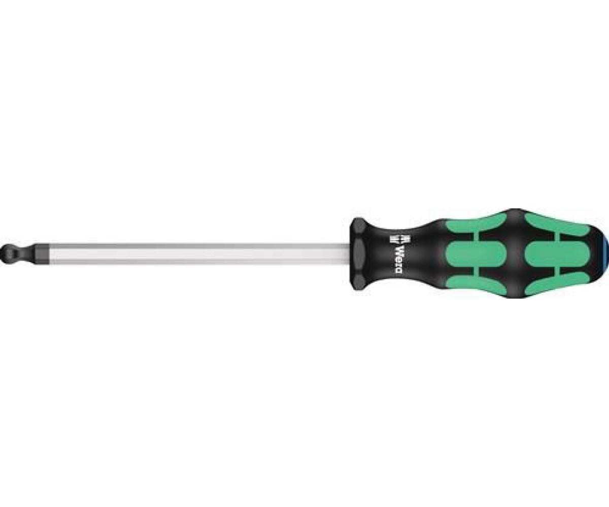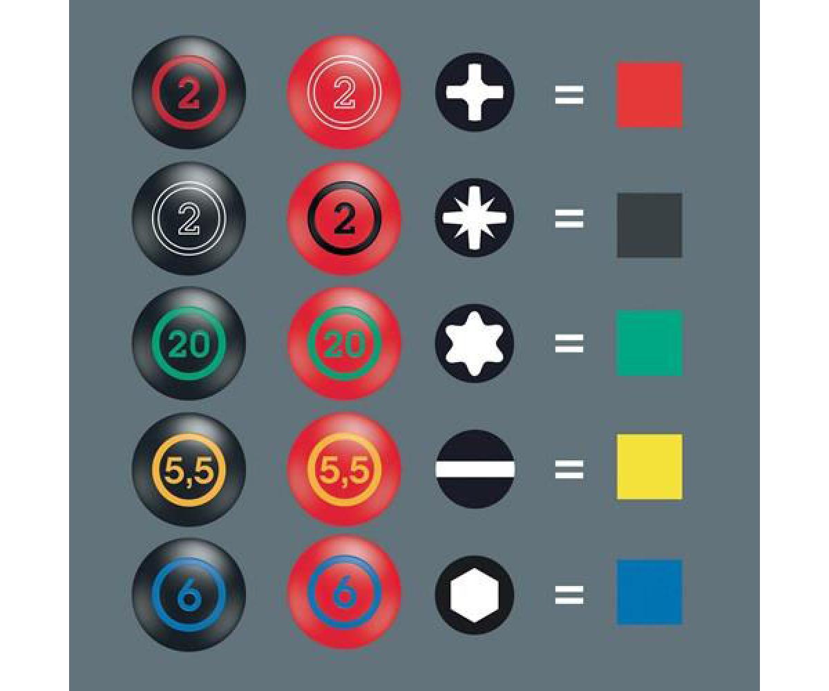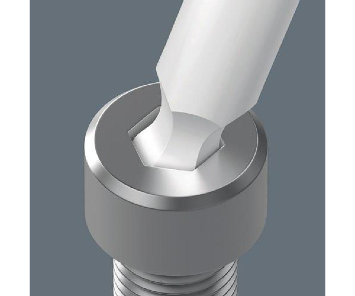 mit 2-Komponenten-Griff · Klinge aus Molybdän-Vanadium-Stahl nicromatt mit Black Point Spitze und Kugelkopf · (ermöglicht das Schrauben bis zu einem Winkel von 20°) · Größenleitsystem · Take it easy Toolfinder System für Innensechskant-Schrauben