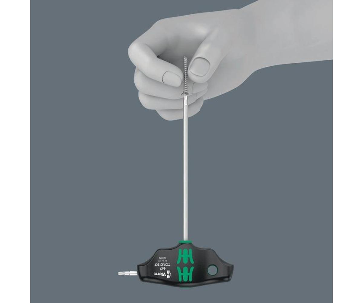 Weitere technische Eigenschaften · Quergriffbreite: 77mm · Grifflänge: 38mm · Klingendurchmesser: 5,0mm · Klingenlänge (in Zoll): 8"Zoll · Take it Easy Quergriff Schraubendreher: ja · Schraubendreher 467 TORX® · HF TX 25x200/15 (kurzer · Schenkel)mm WERA ·
