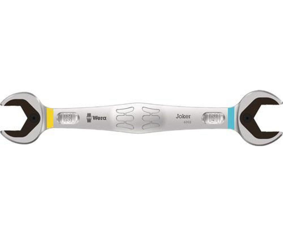 Weitere technische Eigenschaften · Oberfläche: matt verchromt · Material: legierter Werkzeugstahl · Doppelmaulschlüssel 6002 · Joker 22x24mm L.261mm ma · verchr.WERA · Sein Plus - Haltefunktion für Muttern durch eine Metallplatte im Maul - kein Abrutschen durch Endanschlag - kleiner Rückschwenkwinkel von nur 30° - Doppelsechskantgeometrie verringert die Abrutschgefahr ·
