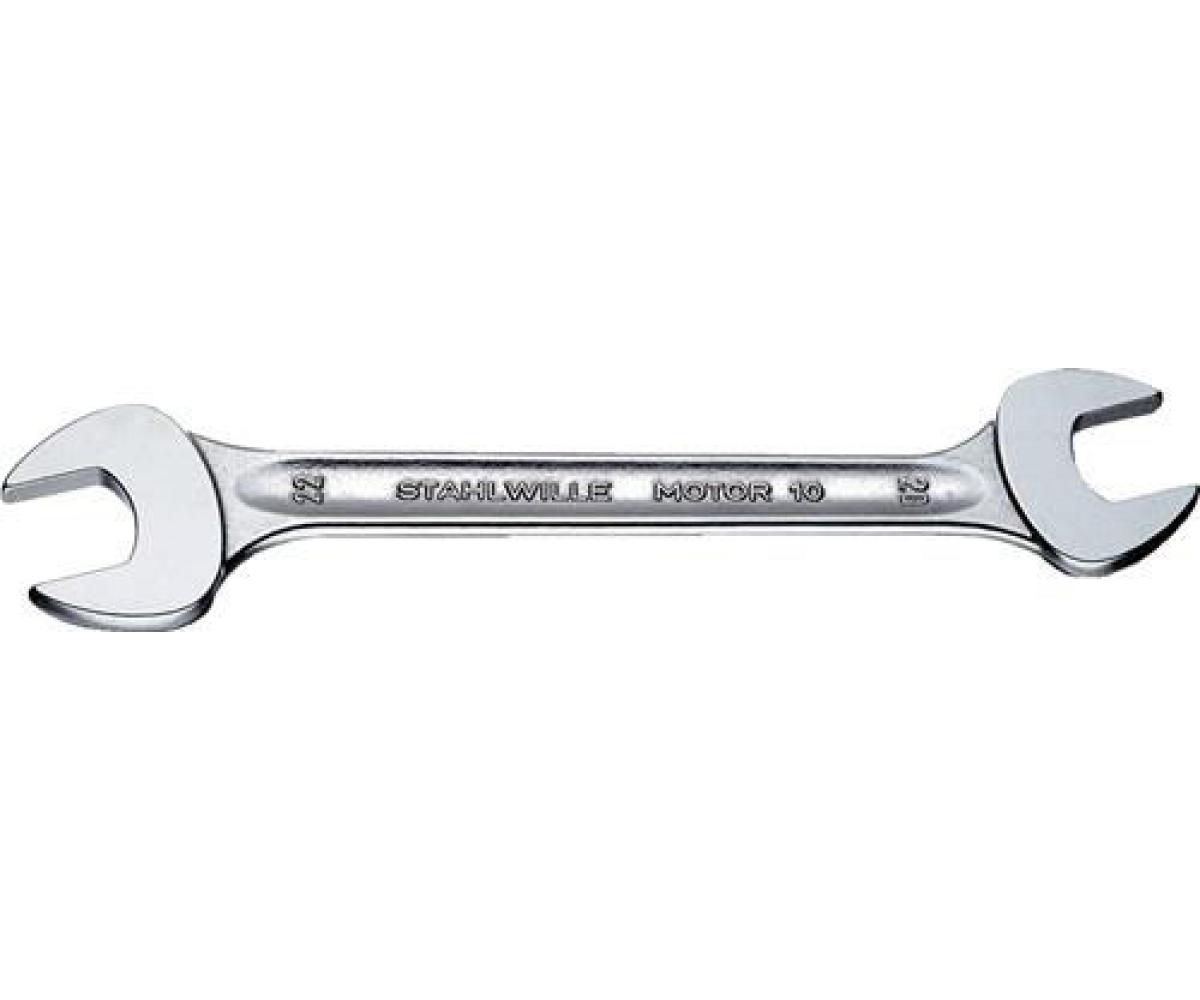 Weitere technische Eigenschaften · Oberfläche: verchromt · Material: Chrom-Alloy-Stahl · Maulstellung: 15° · Doppelmaulschlüssel MOTOR · 10 10x11mm L.155mm · verchr.STAHLWILLE · DIN 3110 / ISO 3318 / ISO 1085 / ISO 10102 ·