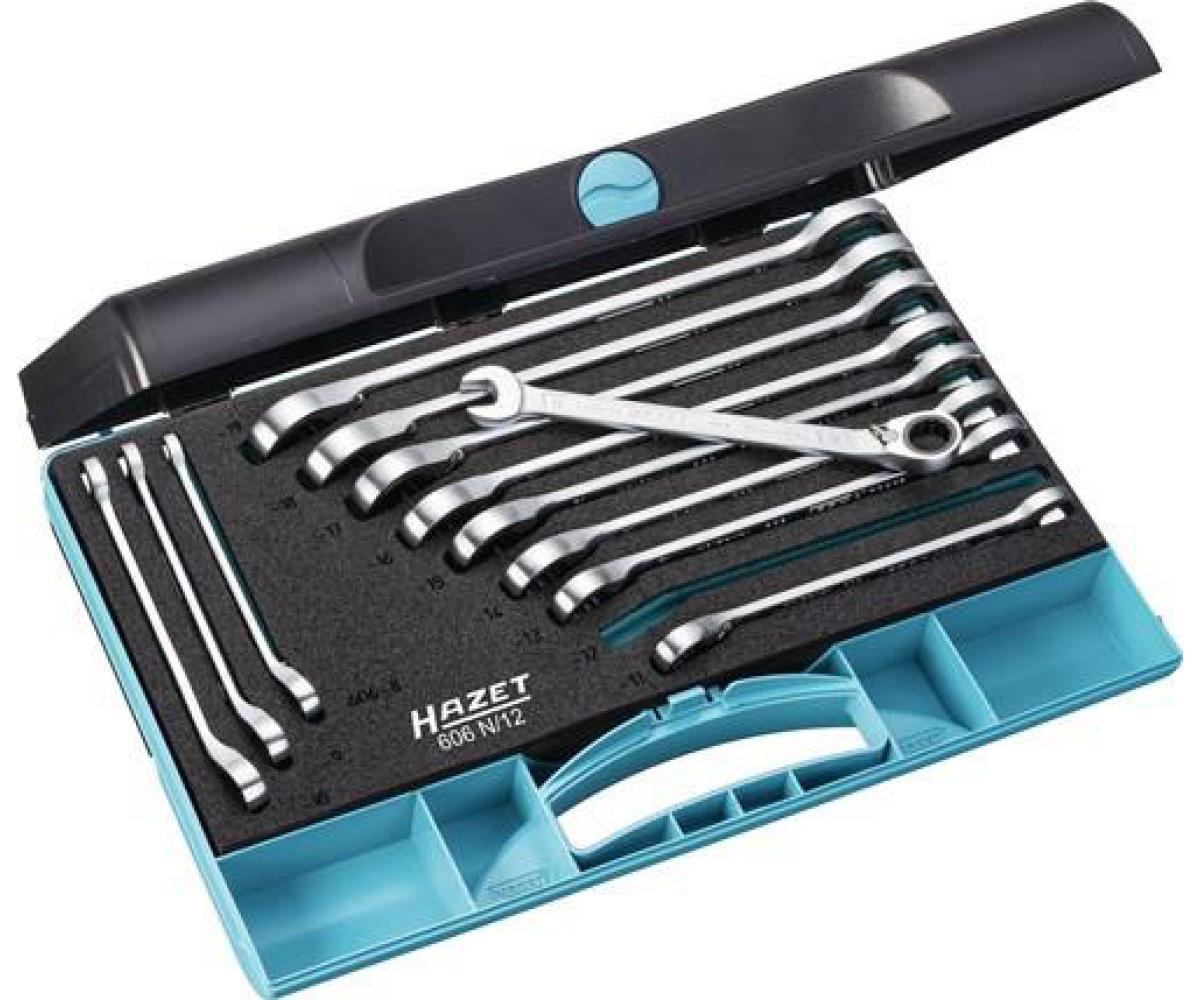 Inhalt: je 1 Knarrenringmaulschlüssel 8 / 9 / 10 / 11 / 12 / 13 / 14 / 15 / 16 / 17 / 18 / 19 mm Lieferung im Kunststoffkasten (1/3 165-L)Technische Daten