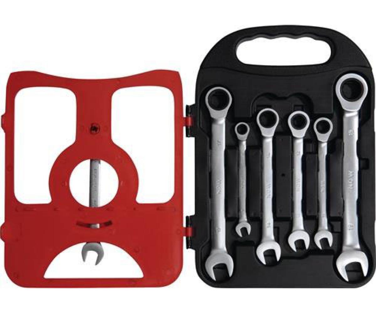 Weitere technische Eigenschaften · Zähne: 72 · Verpackung: try me Karte · Material: Chrom-Vanadium-Stahl · Schlüsselweiten: 8-19mm · Knarrenringmaulschlüssels · atz 7-tlg.SW 8-19mm · ger.NOW · Inhalt: je 1 St. SW 8 / 10 / 12 / 13 / 14 / 17 / 19 mm ·