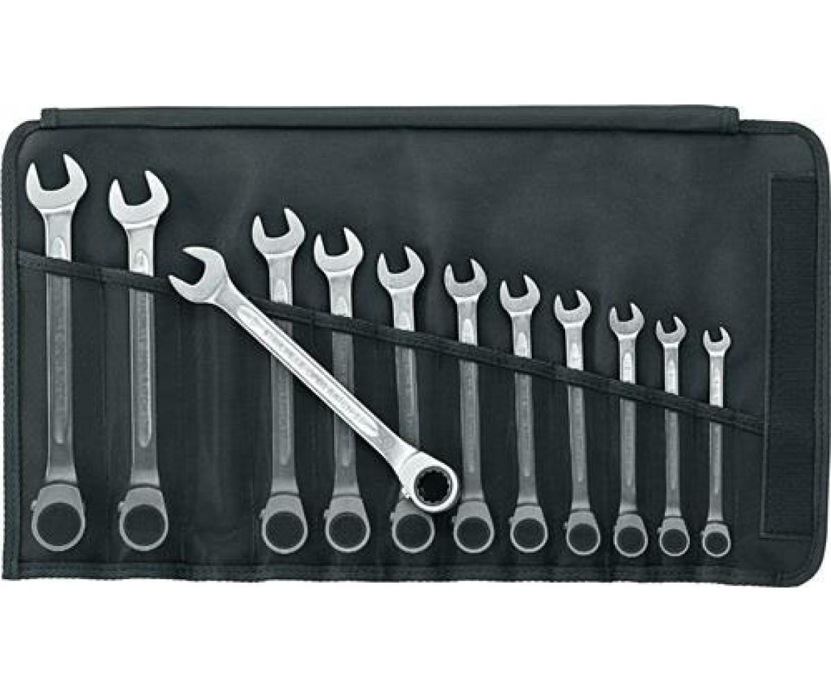Weitere technische Eigenschaften · Zähne: 72 · Verpackung: Rolltasche · Material: Chrom-Alloy-Stahl · Schlüsselweiten: 8-19mm · Maulringratschenschlüssel · satz 17/12 12-tlg.SW · 8-19mm · Inhalt: 4000 826 075 je 1 Knarren-Ring-Maulschlüssel Gr. 8 / 10 / 13 / 17 / 19 mm 4000 826 076 je 1 Knarren-Ring-Maulschlüssel Gr. 8 / 9 / 10 / 11 / 12 / 13 / 14 / 15 / 16 / 17 / 18 / 19 mm ·