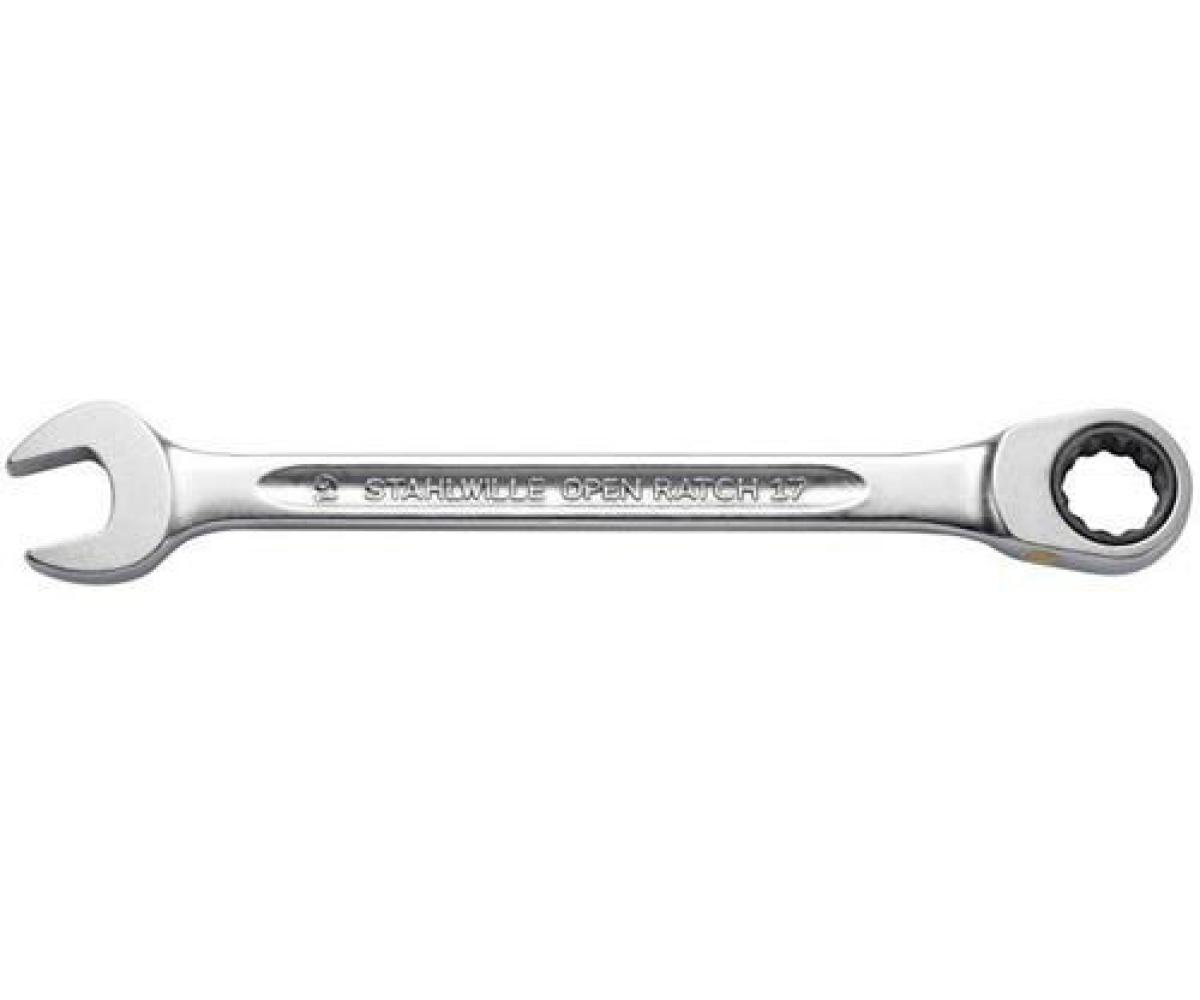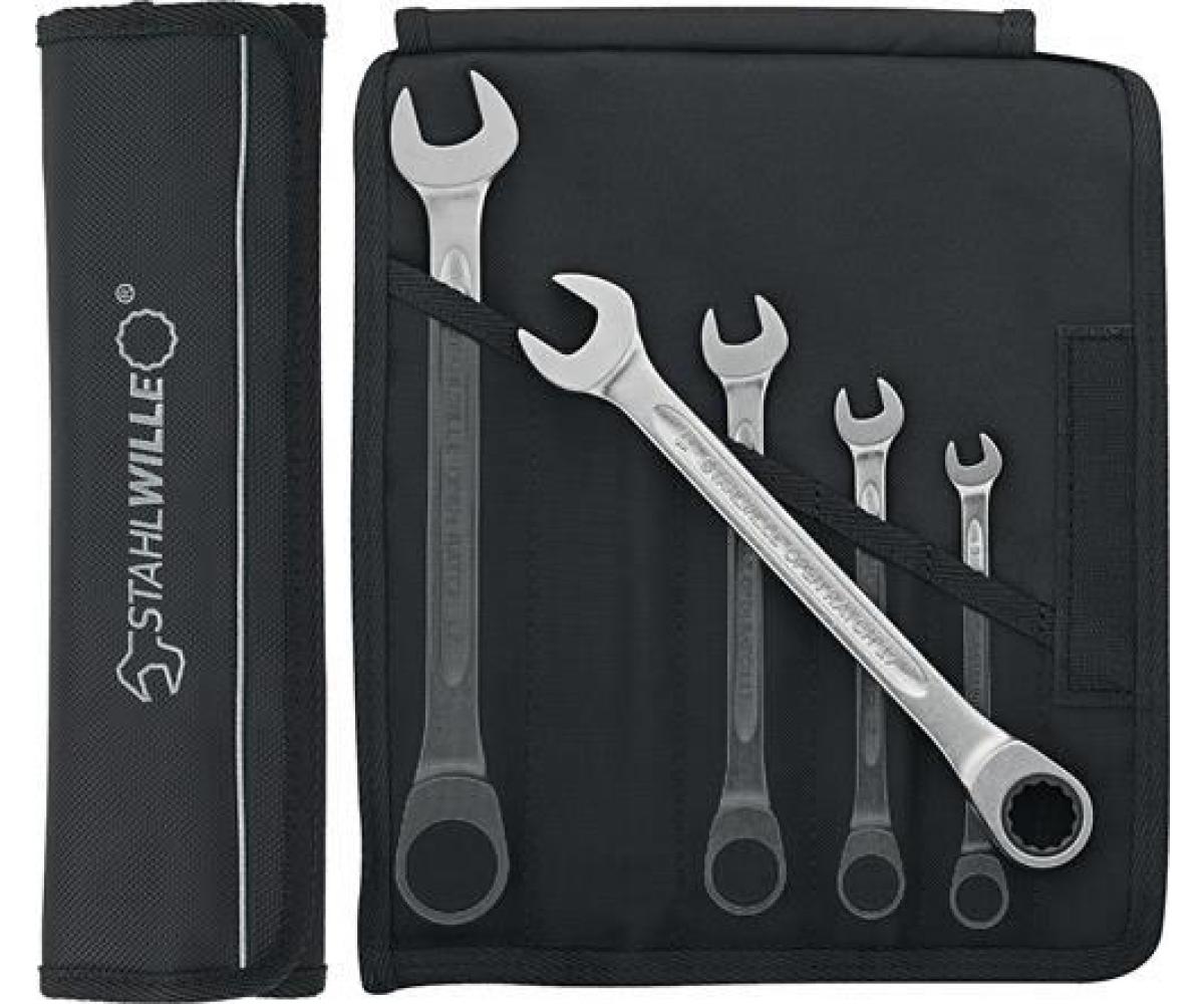 Weitere technische Eigenschaften · Zähne: 72 · Verpackung: Rolltasche · Material: Chrom-Alloy-Stahl · Schlüsselweiten: 8-19mm · Maulringratschenschlüssel · satz 17F/5 5-tlg.SW · 8-19mm fl.STAHLWILLE · je 1 Knarren-Ring-Maulschlüssel Gr. 8 / 10 / 13 / 17 / 19 mm ·