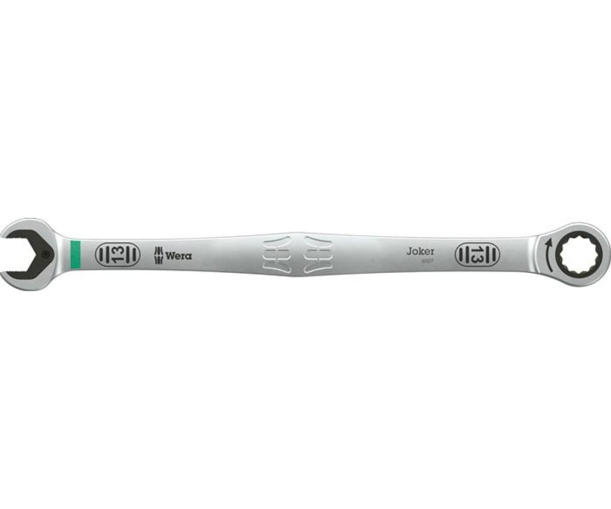 Weitere technische Eigenschaften · Anti-Slip: ja · Außenmaß (b) Maul: 29,4mm · Außenmaß (b1) - Ratschenringschlüssel: 26mm · Endanschlag: ja · Extra long Joker: ja · Farbe: türkis · Haltefunktion: ja · High Torque Ratchet Wrench: ja · Kopfdicke: 8mm · Rückholwinkel: ja · Take it easy Maul-Ringratschen-Schlüssel Joker: ja · Max. Kopfhöhe - Ratschenringschlüssel: 8,6mm · Maulringratschenschlüssel · 6007 Joker SW 13mm · L.245mm WERA ·