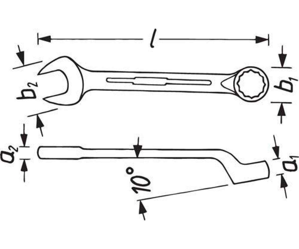 Weitere technische Eigenschaften · Kopfbreite 2: 38,6mm · Kopfhöhe 1: 10,5mm · Kopfhöhe 2: 6,7mm · Kopfbreite 1: 26,9mm · Ausführung: Form B · Ringmaulschlüssel 603 SW · 18mm L.210mm Form B · Spezialstahl HAZET ·