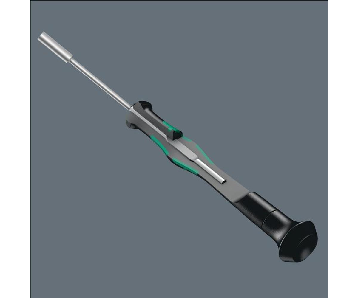 Außen-6-kant · hochwertiger Micro Steckschlüssel für feinmechanische Verschraubungen · durch Abstützen der Hand auf der Drehkappe und durch die Schnelldrehzone unterhalb der Drehkappe ist blitzschnelles Zwirbeln möglich, zeitintensives Umgreifen entfällt · Kraftzone mit integrierten Weichzonen sorgt für die Übertragung hoher Löse- und Anzugsmomente · Präzisionszone für den richtigen Drehwinkel bei Justierarbeiten · Take it easy Werkzeugfinder mit Farbkennzeichnung nach Profilen und Größenstempelung - zum einfachen und schnellen Finden des benötigten Werkzeugs