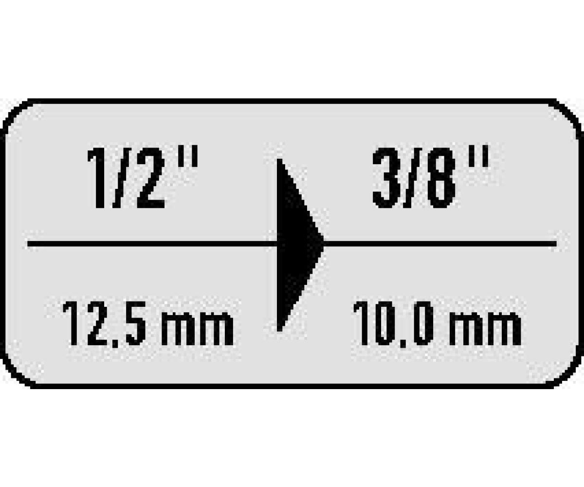 aus Chrom-Vanadium-Stahl · matt verchromt · für Hand- und Maschinenbetrieb (konv. Akkuschrauber, non impact) 12,5 mm (1/2")-Innenvierkant auf 10 mm (3/8")-Außenvierkant