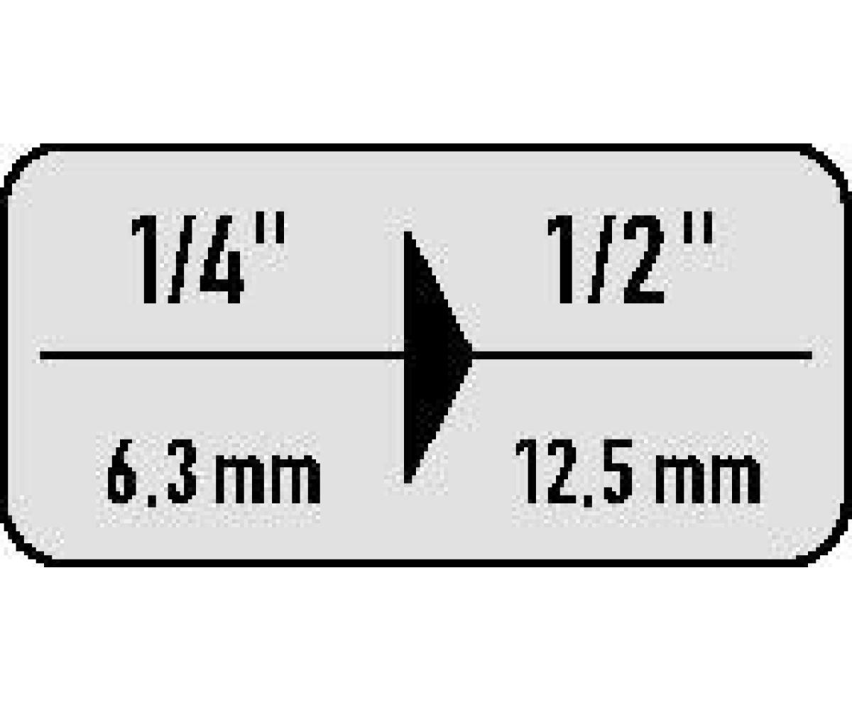 aus CV-Stahl · matt verchromt · für Hand- und Maschinenbetrieb (konv. Akkuschrauber, non impact) Art.-Nr. 8000 907 874 1 Vergrößerungsstück 6,3 mm (1/4?)-Innenvierkant auf 12,5 mm (1/2?)-Außenvierkant