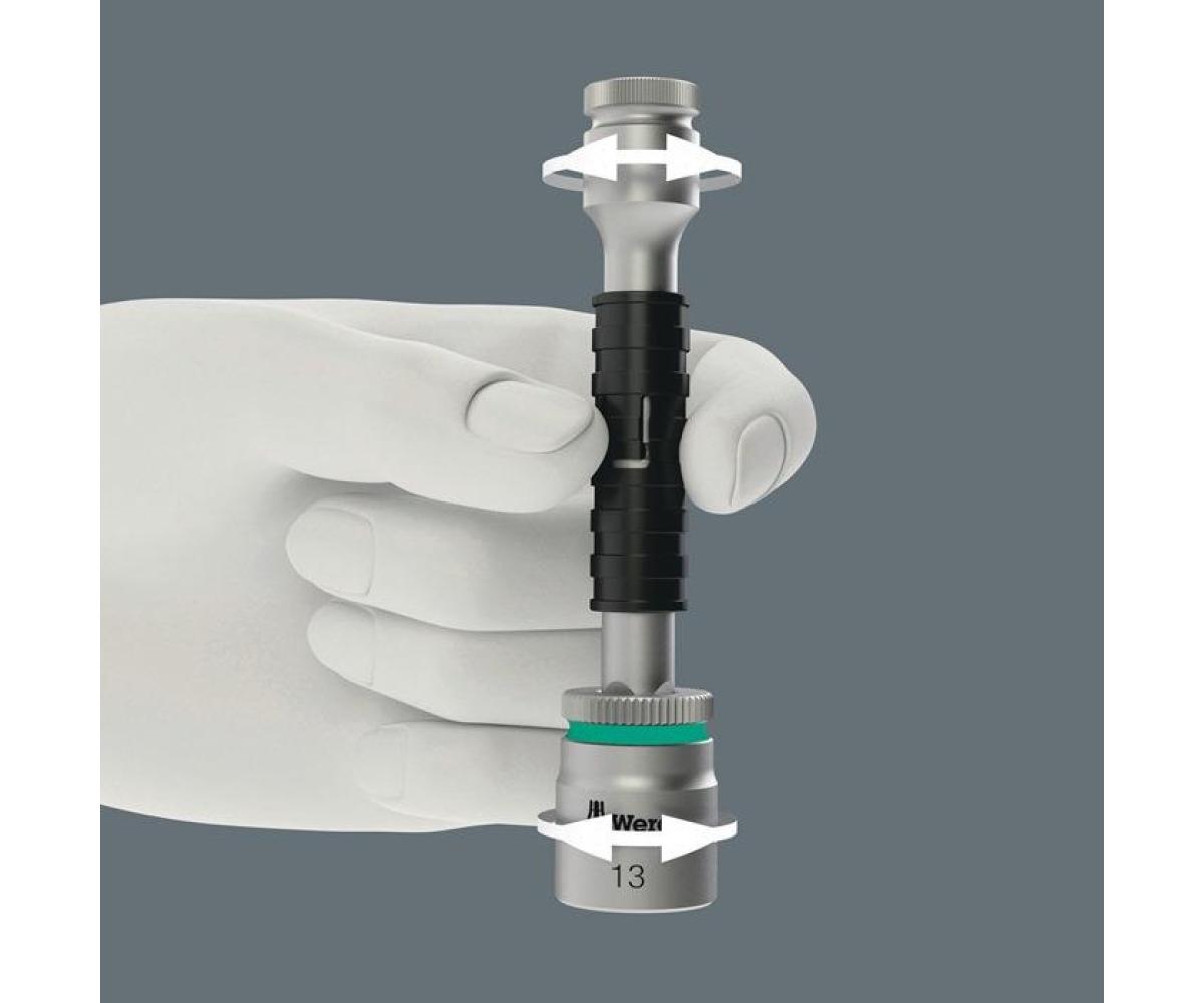 Wera Zyklop Verlängerung mit griffiger Schnelldrehhülse für blitzschnelles Anziehen und Lösen von Schrauben und Muttern. Aus mattverchromtem Chrom-Vanadium.