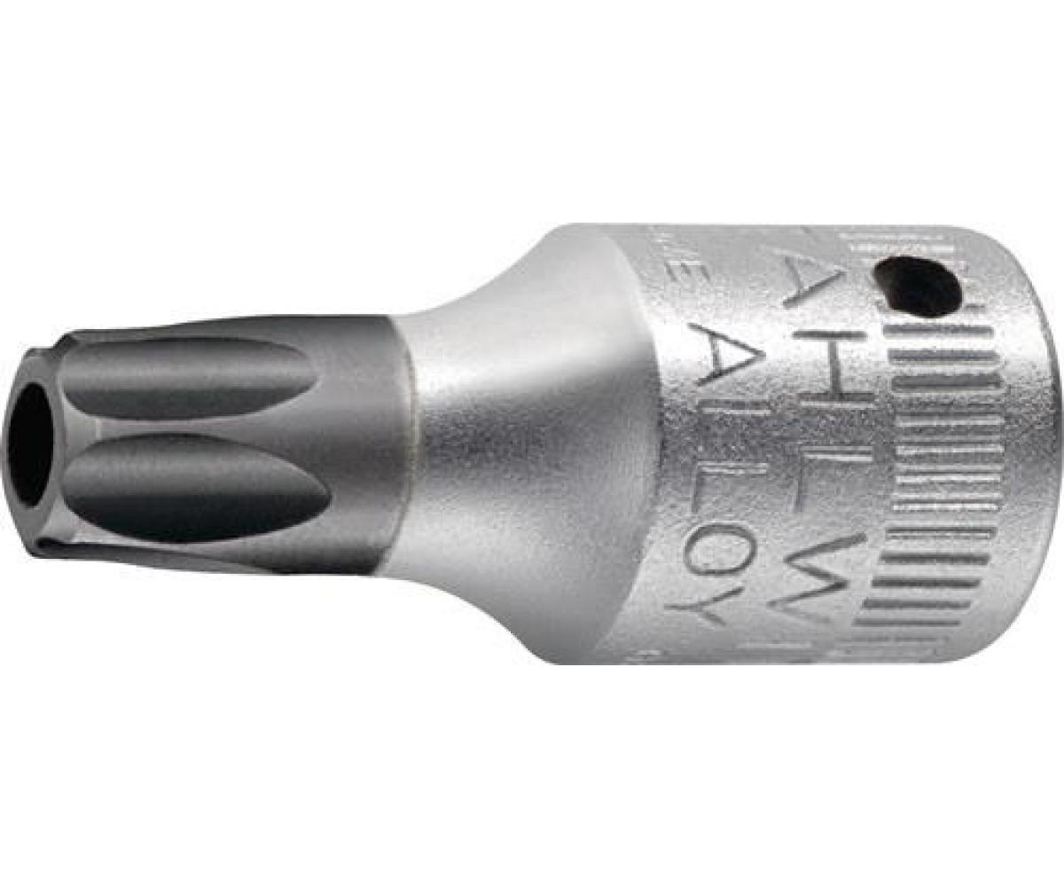 6,3 mm (1/4 ”)-Vierkantantrieb · mit Bohrung in der Antriebsspitze · für Schrauben mit Innen-TORX®-Profil (auch mit Sicherungsstift) · (TORX® TAMPER RESISTANT) · Chrom-Alloy-Stahl · verchromt