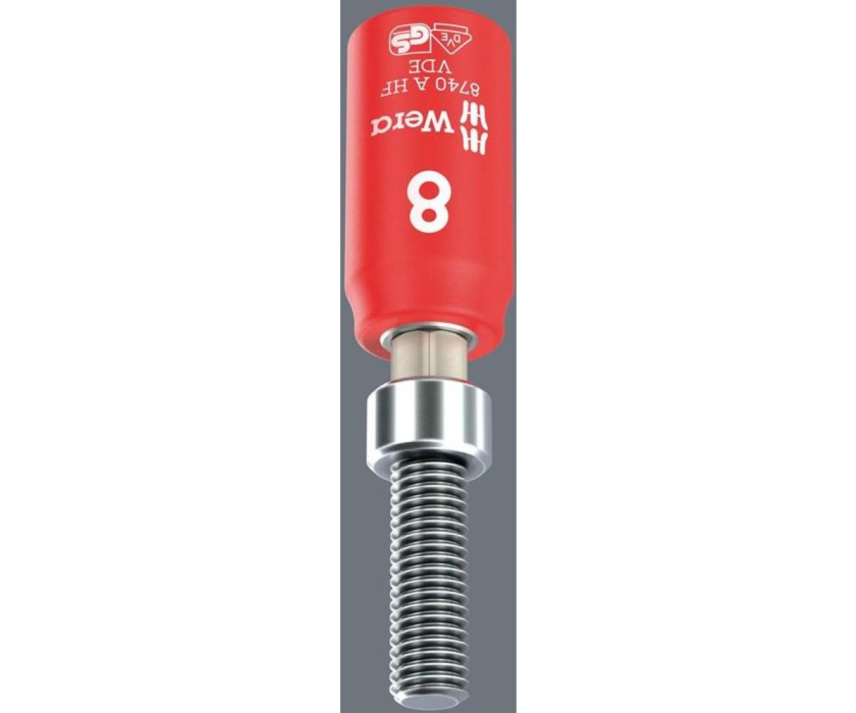Weitere technische Eigenschaften · Durchmesser hinten (d2): 18,0mm · Hex-Plus: ja · Höhe Abtrieb: 11,0mm · Icon links: Innensechskant · Icon rechts: Aussenvierkant · Mit Haltefunktion für Innensechskant-Schrauben: ja · Steckschlüsseleinsatz · 8740 A VDE HF 1/4 Zoll SW · 8mm L.47mm WERA ·