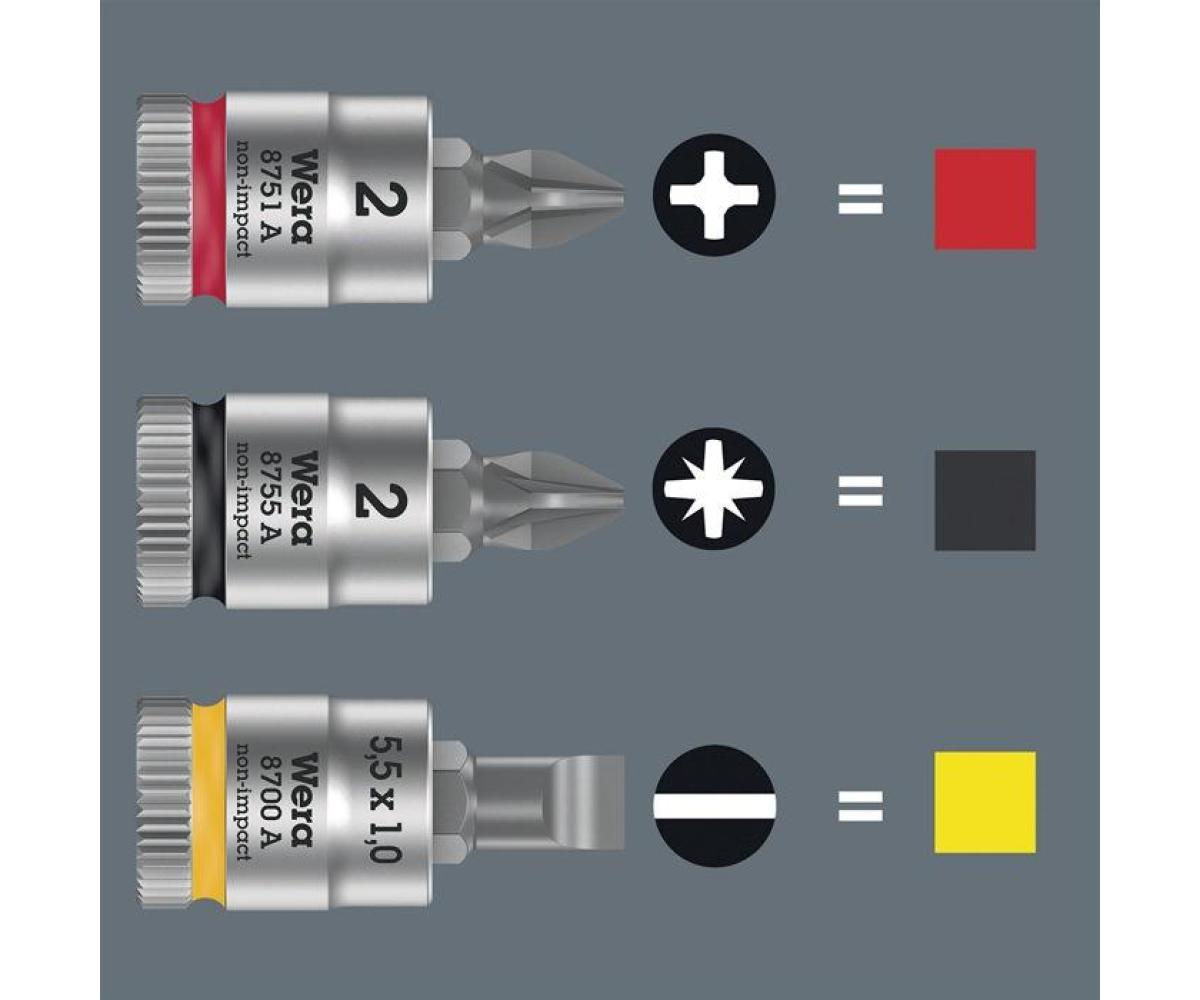 Bitnuss mit 1/4" Antrieb · mit "Take it easy" Werkzeugfinder mit Farbkennzeichnung nach Größen - zum einfachen und schnellen Finden des benötigten Werkzeugs