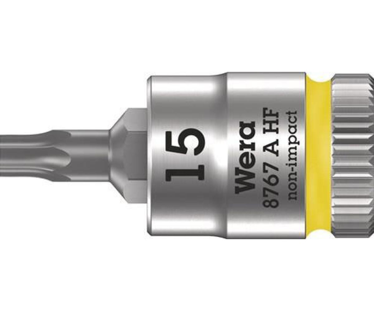 Weitere technische Eigenschaften · Material: legierter Werkzeugstahl · Steckschlüsseleinsatz · 8767 A HF TORX® 1/4 Zoll · T15 L.28mm WERA ·
