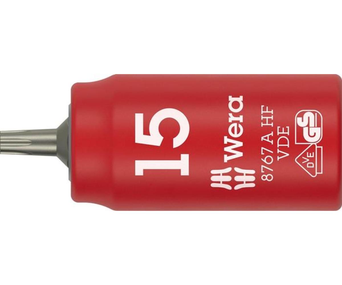 VDE · mit Haltefunktion für TORX®-Schrauben für besonders komfortables Schrauben durch reduzierte Gefahr des Schraubenverlustes beim Zuführen zum Werkstück · mit erhöhter Sicherheit durch gelben Isolationskern, der bei einer eventuellen Beschädigung der äußeren roten VDE Isolationsschicht sichtbar wird · stückgeprüftes Werkzeug gem. IEC 60900 bei 10.000 V für sicheres Arbeiten bei der zugelassenen Spannung von 1.000 V