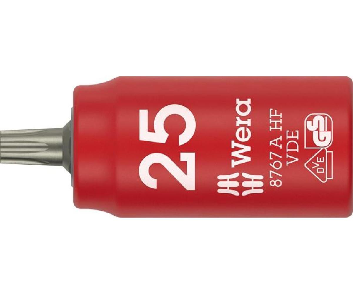 Weitere technische Eigenschaften · Durchmesser hinten (d2): 18,0mm · Höhe Abtrieb: 9,0mm · Icon links: TORX® · Icon rechts: Aussenvierkant · Mit Haltefunktion für Innen-TORX®-Schrauben: ja · Steckschlüsseleinsatz · 8767 A VDE HF 1/4 Zoll TX · 25 L.36mm WERA ·