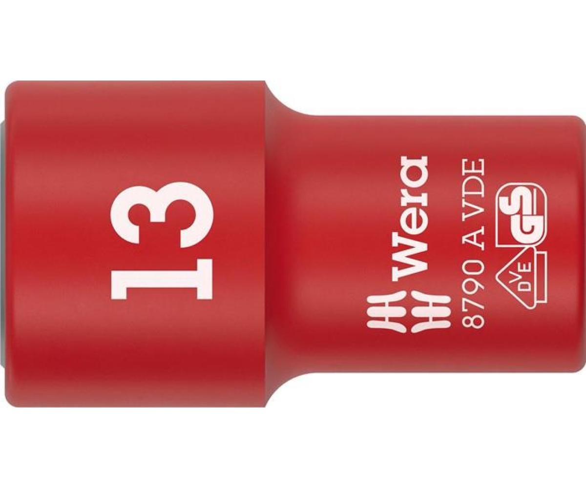 Weitere technische Eigenschaften · Außenmaß (d1): 22,8mm · Durchmesser hinten (d2): 18,0mm · GS - Geprüfte Sicherheit ohne Kaltschlagfestigkeitsprüfung: ja · Icon links: Außensechskant · Icon rechts: Aussenvierkant · Steckschlüsseleinsatz · 8790 A VDE 1/4 Zoll SW · 13mm L.41mm WERA ·