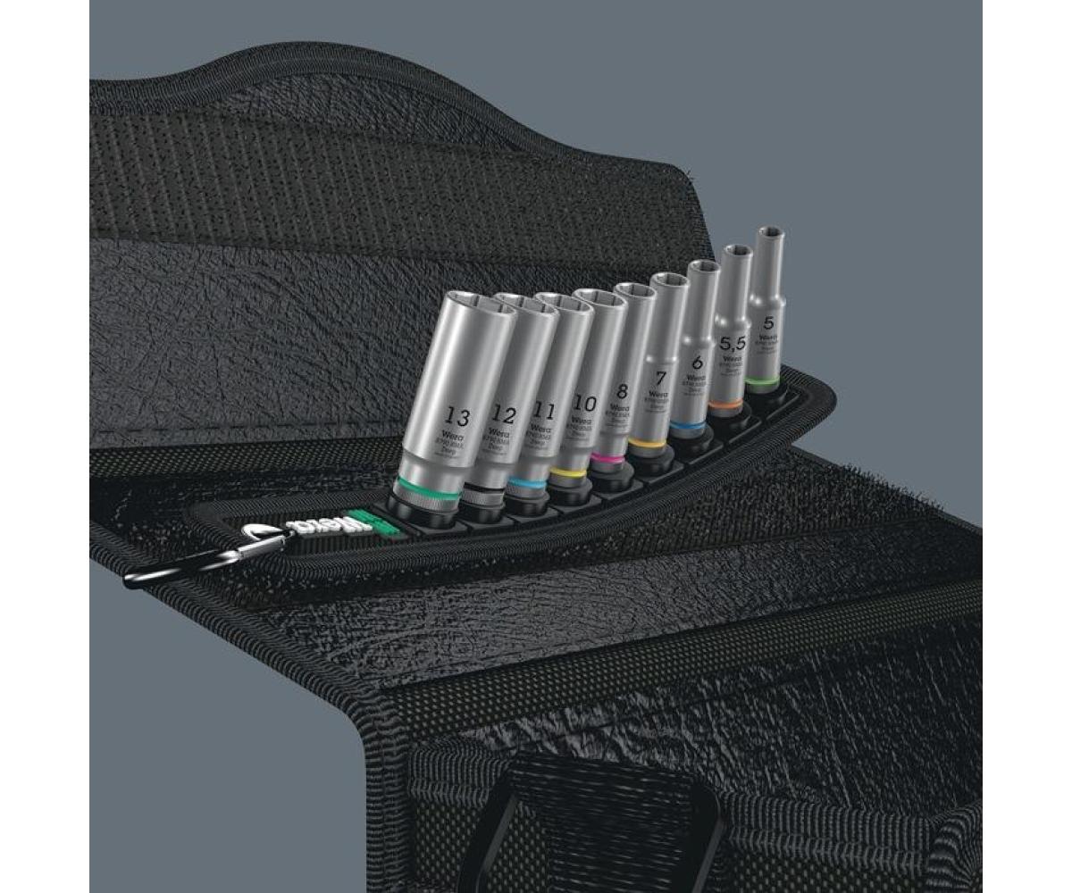Weitere technische Eigenschaften · Ausführung: Außensechskant · Geeignet für Wera 2go: ja · Take it easy Nuss: ja · Twist and Lock: ja · Steckschlüsseleinsatzset · Belt A Deep 1 9-tlg.SW · 5-13mm Antr.6,3mm (1/4) ·