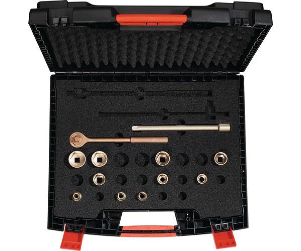 Inhalt: 1 Umschaltknarre, Rückschwenkwinkel 8° je 1 6-kant-Steckschlüssel-Einsatz SW 10 / 12 / 13 / 17 / 19 / 22 / 24 / 27 / 30 / 32 mm 1 Verlängerung 250 mm Lieferung im KunststoffkastenTechnische Daten