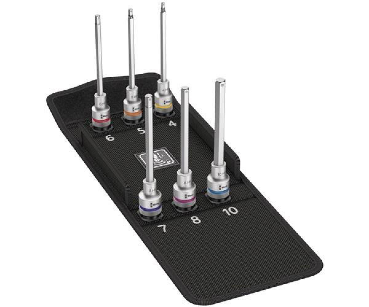 Inhalt: je 1 Steckschlüssel-Einsatz Gr. 4 x 140 / 5 x 140 / 6 x 140 / 7 x 140 / 8 x 140 / 10 x 140 mm Lieferung in Tasche aus textilem MaterialTechnische Daten