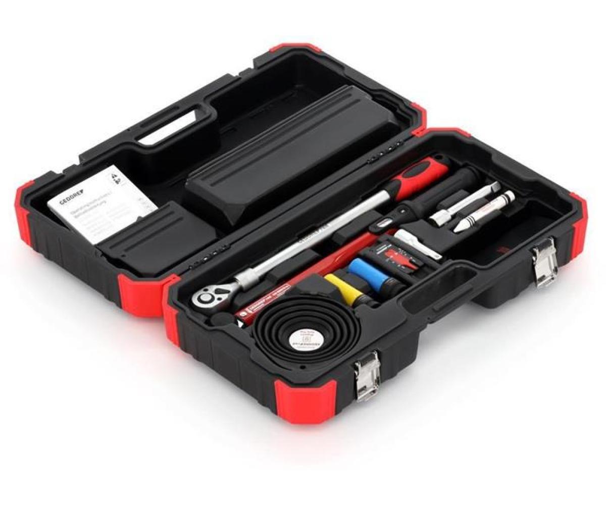 das Rad-Montage-Set gehört zur Grundausstattung einer jeden KFZ-Werkstatt · mit dem Set haben Sie stets Drehmomentschlüssel, Teleskopknarre und passende Einsätze dabei · aus hochwertigen Materialien hergestellt, was es besonders langlebig und robust gegen die alltäglichen Beanspruchungen macht · der Satz wird in einem robusten Kunststoffkoffer mit Metallscharnieren geliefert, so können Sie die Werkzeuge übersichtlich aufbewahren und sicher transportieren · das GEDORE red Sortiment umfasst neben Hammer und Zange auch weiteres Werkzeug für den Heimwerker · mit einem optimalen Preis-Leistungs-Verhältnis erfüllt es dabei alle Industrie-Normen