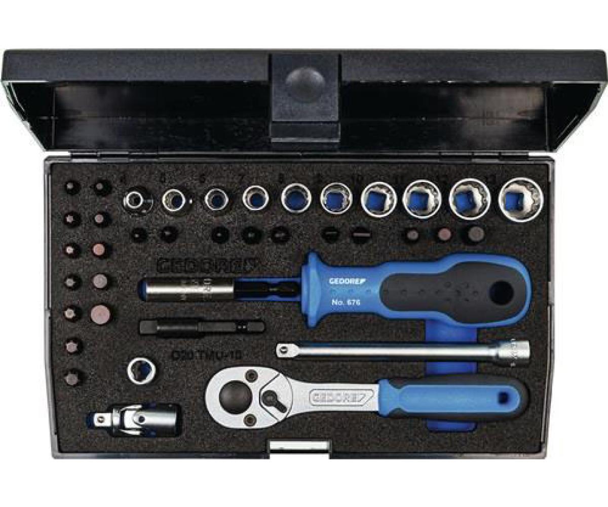 Weitere technische Eigenschaften · Rückschwenkwinkel: 15° · Material: Chrom-Vanadium-Stahl · Steckschlüsselsatz D 20 · TMU-10 40-tlg.1/4 Zoll SW · 4-13mm Z.24 12KT GEDORE ·