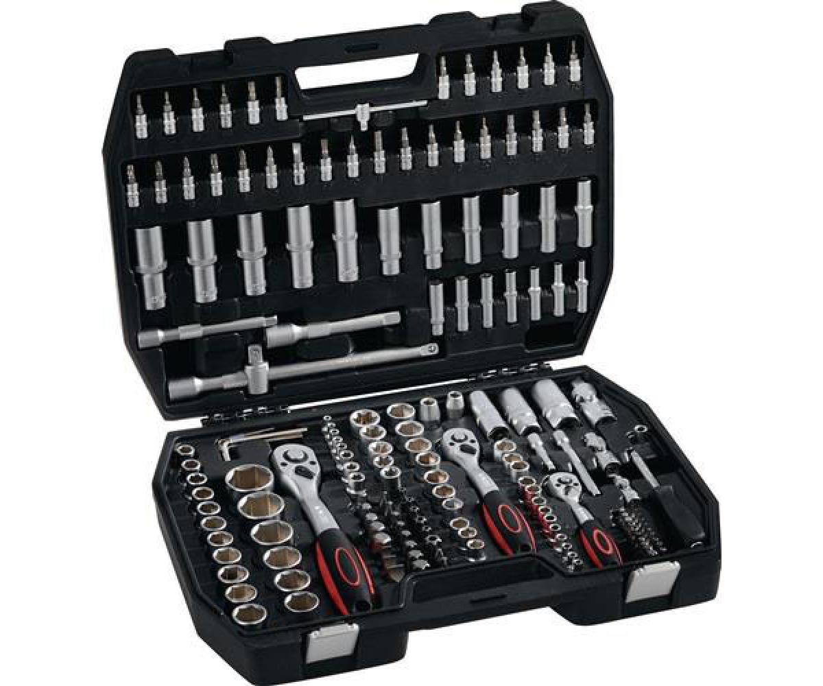 Weitere technische Eigenschaften · Rückschwenkwinkel: 5° · Material: Chrom-Vanadium-Stahl · Steckschlüsselsatz · 171-tlg.1/4+3/8+1/2 Zoll · SW 4-32mm Z.72/72/72 6KT · Inhalt: mit 6,3 mm (1/4 ?)-Vierkantantrieb 1 Hebel-Umschaltknarre (72 Zähne) mit 2-Komponenten-Griff und Nussverriegelungsfunktion mit Druckknopfauslösung je 1 6-kant-Steckschlüssel-Einsatz 4 / 4,5 / 5 / 5,5 / 6 / 7 / 8 / 9 / 10 / 11 / 12 / 13 / 14 mm je 1 6-kant-Tiefbett-Steckschlüssel-Einsatz 4 / 5 / 6 / 7 / 8 / 9 / 10 mm je 1 Steckschlüssel-Einsatz für Schrauben mit Außen-TORX®-Profil E 4 / 5 / 6 / 7 / 8 je 1 Steckschlüssel-Einsatz für Schrauben mit Innen-TORX®-Profil Gr. T 8 / 9 / 10 / 15 / 20 / 25 / 27 / 30 je 1 Steckschlüssel-Einsatz für Schrauben mit Innen-TORX®-Profil mit Sicherungsstift Gr. T 8 / 9 / 10 / 15 / 20 / 25 / 27 / 30 je 1 Steckschlüssel-Einsatz für Schrauben mit Kreuzschlitz (PH) Gr. 0 / 1 / 2 je 1 Steckschlüssel-Einsatz für Schrauben mit Kreuzschlitz (PZD) Gr. 0 / 1 / 2 je 1 Steckschlüssel-Einsatz für Schlitzschrauben 4,0 / 4,5 / 6,5 / 7,0 mm je 1 Steckschlüssel-Einsatz für Schrauben mit Innensechskant-Profil 3 / 4 / 5 / 6 mm je 1 Verlängerung 50 + 100 mm 1 Quergriff mit Gleitstück 110 mm 1 Kardangelenk 1 Handgriff mit Vierkant 6,3 mm (1/4 ?) 1 Adapter 6,3 mm (1/4 ?)-Innenvierkant auf 6,3 mm (1/4 ?)-Innensechskant zum Antrieb von Bits mit einer Knarre mit 10,0 mm (3/8 ?)-Vierkantantrieb 1 Hebel-Umschaltknarre (72 Zähne) mit 2-Komponenten-Griff und Nussverriegelungsfunktion mit Druckknopfauslösung je 1 6-kant-Steckschlüssel-Einsatz 10 / 11 / 12 / 13 / 14 / 15 / 16 / 17 / 18 / 19 mm je 1 6-kant-Tiefbett-Steckschlüssel-Einsatz 10 / 11 / 12 / 13 / 14 / 15 mm je 1 Steckschlüssel-Einsatz für Schrauben mit Außen-TORX®-Profil E 10 / 11 / 12 / 14 / 16 / 18 1 Verlängerung 125 mm 1 Kardangelenk 1 Zündkerzen-Einsatz 18 mm 1 Adapter 10 mm (3/8 ?)-Innenvierkant auf 7,94 mm (5/16 ?)-Innensechskant zum Antrieb von Bits mit einer Knarre mit 12,5 mm (1/2 ?)-Vierkantantrieb 1 Hebel-Umschaltknarre (72 Zähne) mit 2-Komponenten-Griff und Nussverriegelungsfunktion mit Druckknopfauslösung je 1 6-kant-Steckschlüssel-Einsatz 10 / 11 / 12 / 13 / 14 / 15 / 16 / 17 / 18 / 19 / 20 / 21 / 22 / 24 / 27 / 30 / 32 mm je 1 6-kant-Tiefbett-Steckschlüssel-Einsatz 16 / 17 / 18 / 19 / 22 mm je 1 Steckschlüssel-Einsatz für Schrauben mit Außen-TORX®-Profil E 20 / 24 je 1 Zündkerzen-Einsatz 16 / 21 mm 1 Kardangelenk je 1 Verlängerung 125 + 250 mm 1 Gleitstück 1 Vergrößerungsstück 10 mm (3/8 ?) auf 12,5 mm (1/2 ?) 1 Adapter 12,5 mm (1/2 ?)-Innenvierkant auf 7,94 mm (5/16 ?)-Innensechskant zum Antrieb von Bits mit einer Knarre je 1 6-kant Stiftschlüssel SW 1,27 / 1,5 / 2,0 / 2,5 / 3 / 4 / 5 mm je 1 Bit 6,3 mm (1/4 ?) für Schrauben mit Innen-TORX®-Profil Gr. T 5 / 6 / 7 je 1 Bit 6,3 mm (1/4 ?) für Schrauben mit Innen-TORX®-Profil und Sicherungsstift Gr. T 7 / 10 / 15 / 20 / 25 / 27 / 30 / 40 / 45 je 1 Bit 7,94 mm (5/16 ?) für Schlitzschrauben 8 / 10 / 12 mm je 1 Bit 7,94 mm (5/16 ?) für Schauben mit Kreuzschlitz (PH) Gr. 3 / 4 je 1 Bit 7,94 mm (5/16 ?) für Schrauben mit Kreuzschlitz (PZD) Gr. 3 / 4 je 1 Bit 7,94 mm (5/16 ?) für Schrauben mit Innen-TORX®-Profil Gr. T 40 / 45 / 50 / 55 / 60 / 70 je 1 Bit 7,94 mm (5/16 ?) für Schrauben mit Innen-TORX®-Profil und Sicherungsstift Gr. T 40 / 45 / 50 / 55 / 60 / 70 je 1 Bit 6,3 mm (1/4 ?) für Schrauben mit Spline-Profil M 5 / 6 / 8 je 1 Bit 6,3 mm (1/4 ?) für Schrauben mit Ribe-Profil RM 5 / 6 / 7 / 8 9 je 1 Bit 8 mm (5/16 ?) für Schrauben mit Innensechskant-Profil Gr. 7 / 8 / 10 / 12 / 14 mm ·