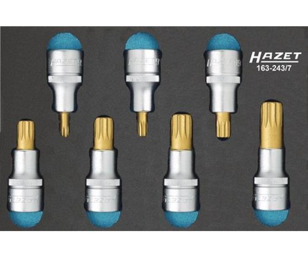 Weitere technische Eigenschaften · Breite: 172mm · Tiefe: 114mm · Höhe: 35mm · Werkzeugmodul 163-243/7 · 7-tlg.HAZET · je 1 Schraubendreher-Steckschlüsseleinsatz 12,5 mm (1/2?) für Innen-Vielzahn-Schrauben (XZN) M 6 / 8 / 10 / 12 / 14 / 16 / 18 ·
