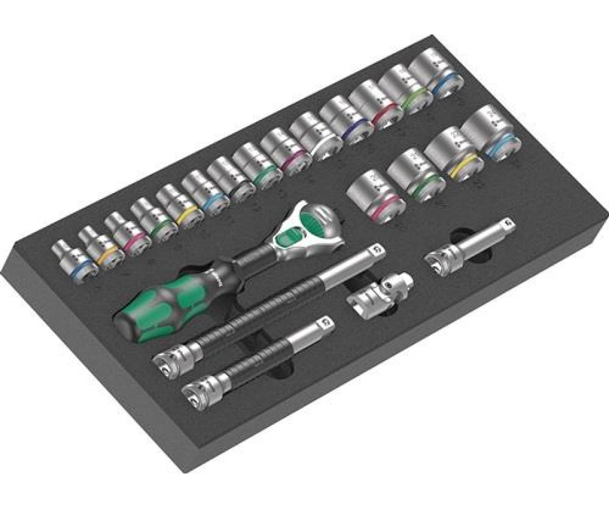 Inhalt: Zyklop Speed-Knarre 8000 B Antrieb 3/8? x 199 mm Zyklop-Verlängerung mit Schnelldrehhülse 8794 SB 3/8? x 125 mm Zyklop-Verlängerung mit Schnelldrehhülse 8794 LB 3/8? x 200 mm Zyklop-Kardangelenk 8795 B 3/8? x 50 mm Zyklop-„Wobble“-Verlängerung 8794 B 3/8? x 76 mm Zyklop-Steckschlüsseleinsatz 8790 HMB Antrieb 3/8? 6-kant je 1x SW 6 / 7 / 8 / 9 / 10 / 11 / 12 / 13 / 14 / 15 / 16 / 17 / 18 / 19 / 20 / 21 / 22 / 24 mmTechnische Daten