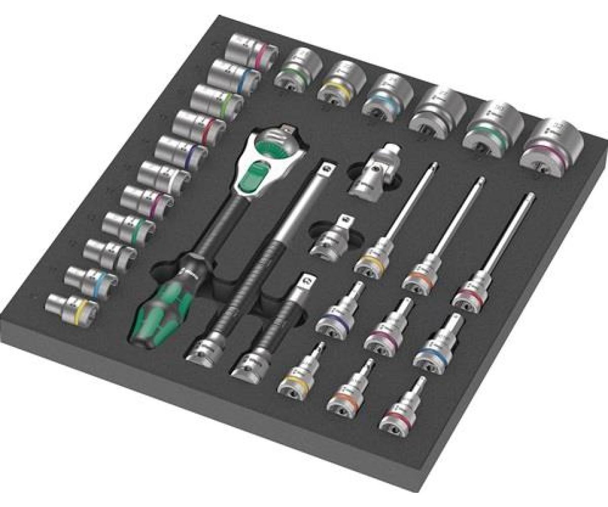Inhalt: Zyklop Speed-Knarre 8000 C Antrieb 1/2? x 277 mm Zyklop-Verlängerung 8794 LC mit Schnelldrehhülse 1/2? x 250 mm Zyklop-Verlängerung 8794 SC mit Schnelldrehhülse 1/2? x 125 mm Zyklop Kardangelenk 8795 C 1/2? x 69 mm Zyklop-„Wobble“-Verlängeurng 8794 C 1/2? x 52 mm Zyklop-Steckschlüsseleinsatz 8790 HMC Antrieb 1/2? 6-kant je 1x SW 10 / 11 / 12 / 13 / 14 / 15 / 16 / 17 / 18 / 19 / 20 / 21 / 22 / 24 / 27 / 30 /32 mm Zylop Bitnuss 8740 C HF Antrieb 1/2? für Innensechskant Länge 60 mm je 1x SW 4 / 5 / 6 / 7 / 8 / 10 mm Länge 140 mm je 1x SW 4 / 5 / 6 mmTechnische Daten