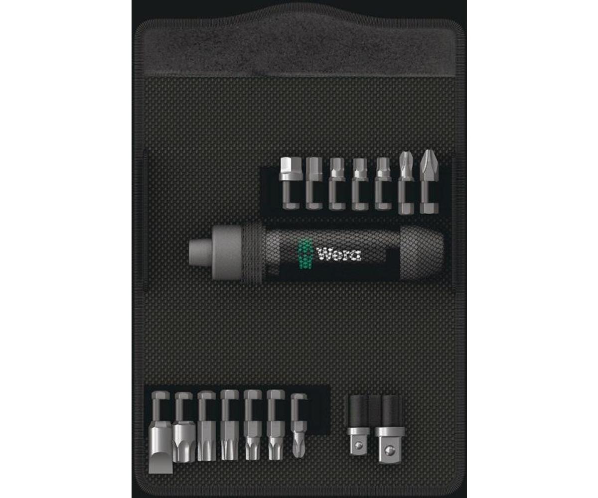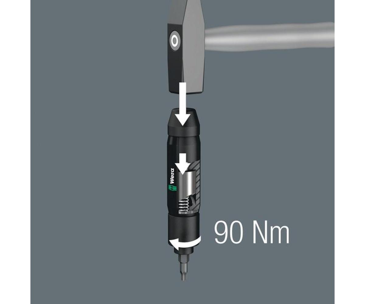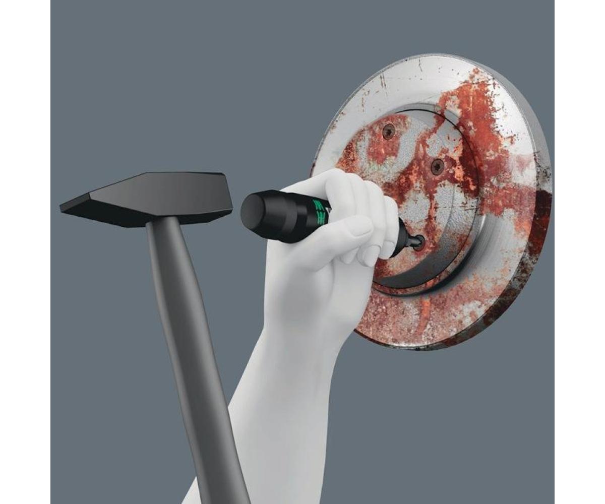 17-teilig (Innenvierkant, TORX®, Innensechskant, Schlitz, Kreuzschlitz PH) · zum Lösen und Anziehen von Schrauben ohne Einsatz von Maschinen allein durch Schlagkraft · besonders hoher Wirkungsgrad durch robuste Doppelkurvenkonstruktion · schlagende Kraft wird in eine Drehbewegung umgesetzt · erspart den Einsatz von Druckluftgeräten · Mehrkomponentengriff · inkl. robuster Textil-Box