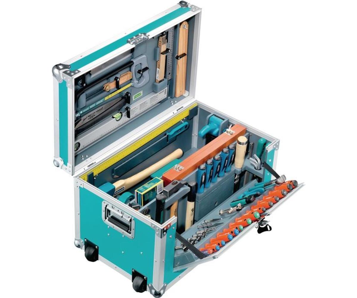 für die Holzbearbeitung / Zimmerei · abschliessbar · mit integrierten Rollen und Schublade für Kleinteile Detaillierte Inhaltsangabe siehe QR-Code