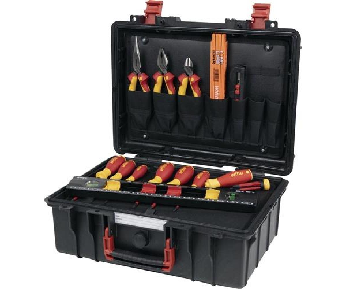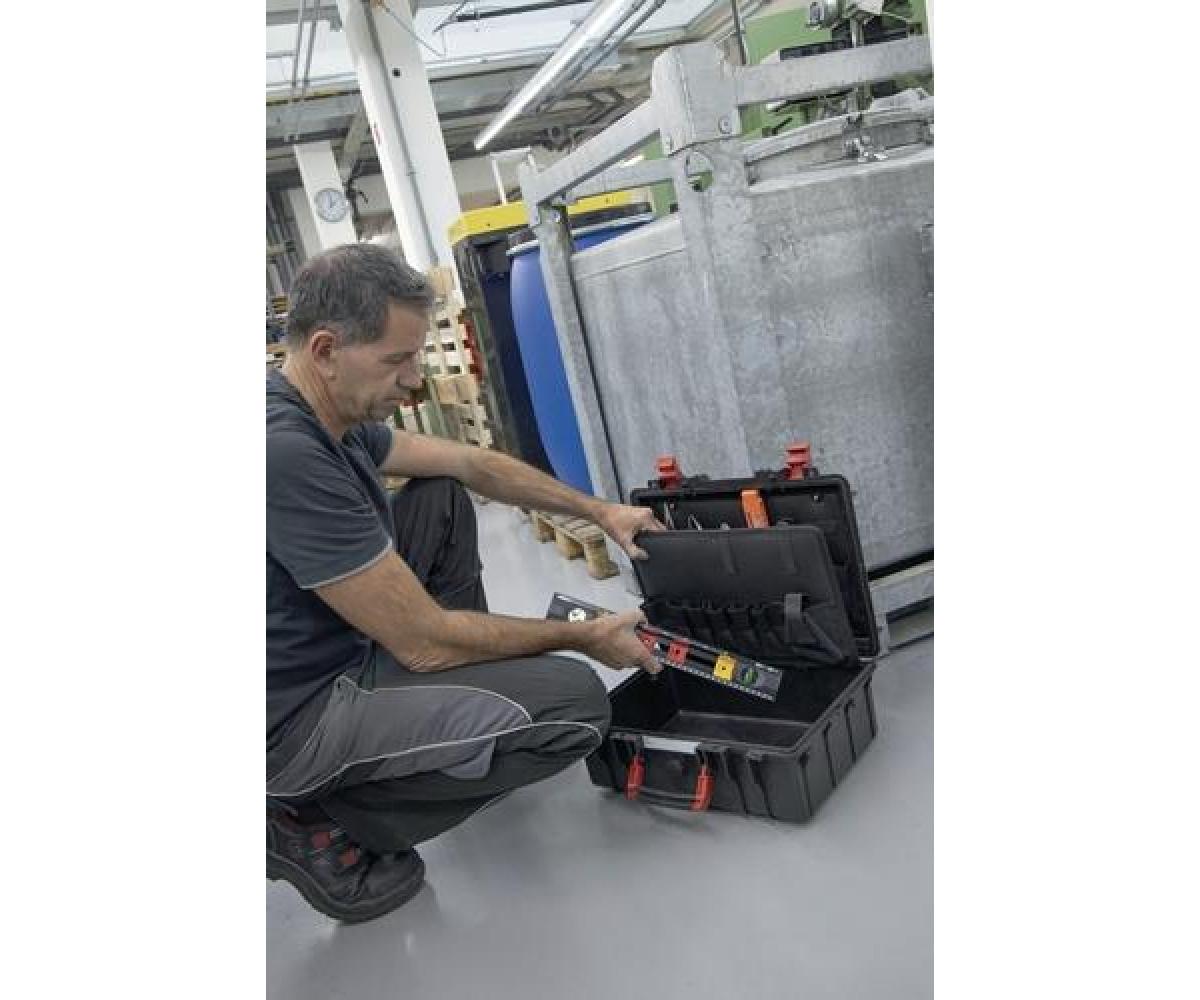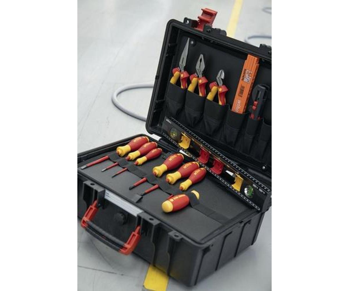 Inhalt: 1 Flachrundzange 200 mm mit 2-Komponenten-Griff* 1 Seitenschneider 160 mm mit 2-Komponenten-Griff* 1 Kombizange 180 mm mit 2-Komponenten-Griff* 1 Elektriker Wasserwaage 400 mm (zum horizontalen und vertikalen Messen und Markieren der Abstände von Unterputzdosen) je 1 Schraubendreher mit SoftFinish®-Griff (slimFix) für Schlitzschrauben Gr. 3,5 / 4,0 / 5,5 mm* je Schraubendreher mit SoftFinish®-Griff (slimFix) für Schrauben mit Kreuzschlitz (PH) Gr. 1 / 2* 1 Schraubendreher mit SoftFinish®-Griff (slimFix) für Schrauben mit Plus-Minus-Profil (Schlitz/PZD) Gr. 2 x 100 mm* 1 Elektriker-Gliedermaßstab Longlife® 2 Meter 1 Abisolier-Multitool für Rundkabel 8 - 13 mm 1 Schraubendreher mit Bitmagazin (inkl. 4 Slim-Bits (Schlitz / PH / PlusMinus Sl-PZD Gr. 2**) *VDE isoliert ** 75 mm langTechnische Daten