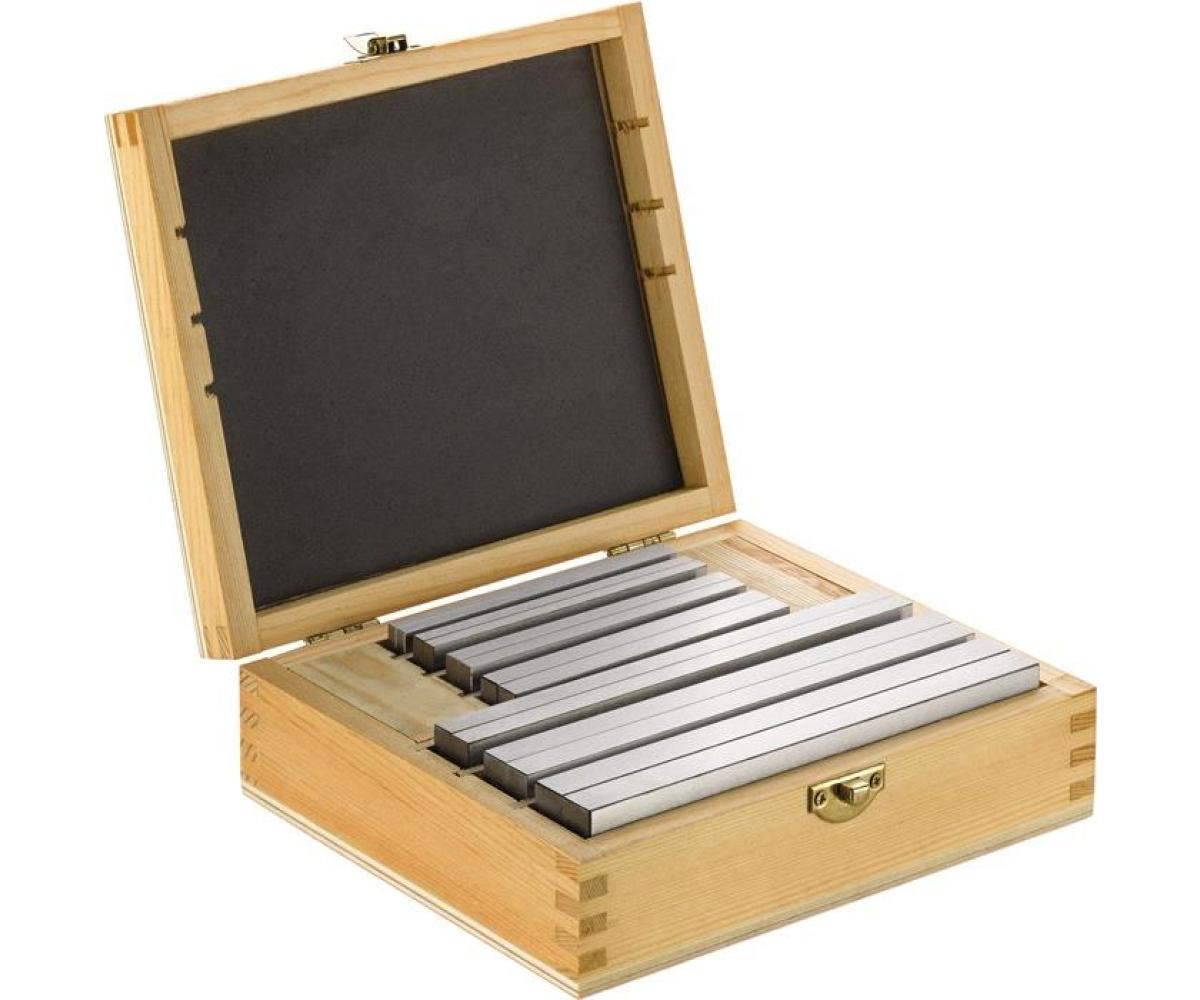 im Holzkasten · mit abnehmbarem Klappdeckel · die Parallelstücke werden als Unterlagen oder Zwischenlagen auf Werkzeugmaschinen verwendet · für Maschinenschraubstöcke oder Anreißplatten sind sie zur parallelen Auflage von Werkstücken unentbehrlich · die Parallelstücke können flach- oder hochkant verwendet werden · die große Genauigkeit ermöglicht das Aufeinanderlegen zweier Größen · Paartoleranz in Höhe tp2 und Breite tp1 nach IT5 · Nennmaße nach ISO 2768 m