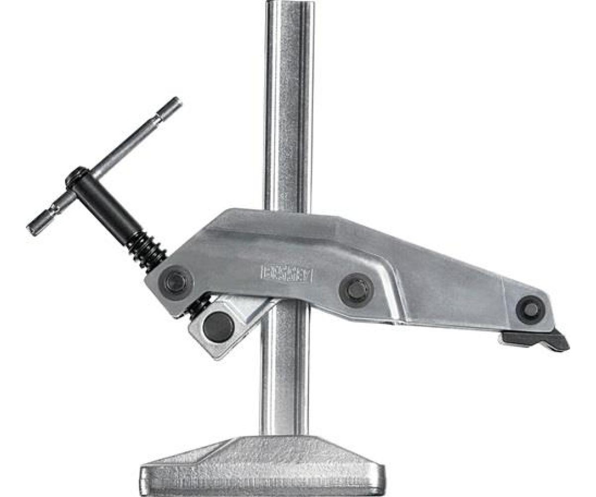 für schnelles und sicheres Spannen auf Maschinentischen und Vorrichtungen · die außenliegende Spindel ermöglicht freien Zugang zum Arbeitsbereich und Spannen in engen Räumen · die Greifarmspanner sind schwenkbar und in der Höhe stufenlos verstellbar und können mit Hilfe eines T-Nutensteins und einer Innensechskantschraube auf dem Maschinentisch befestigt werden (nicht im Lieferumfang enthalten)