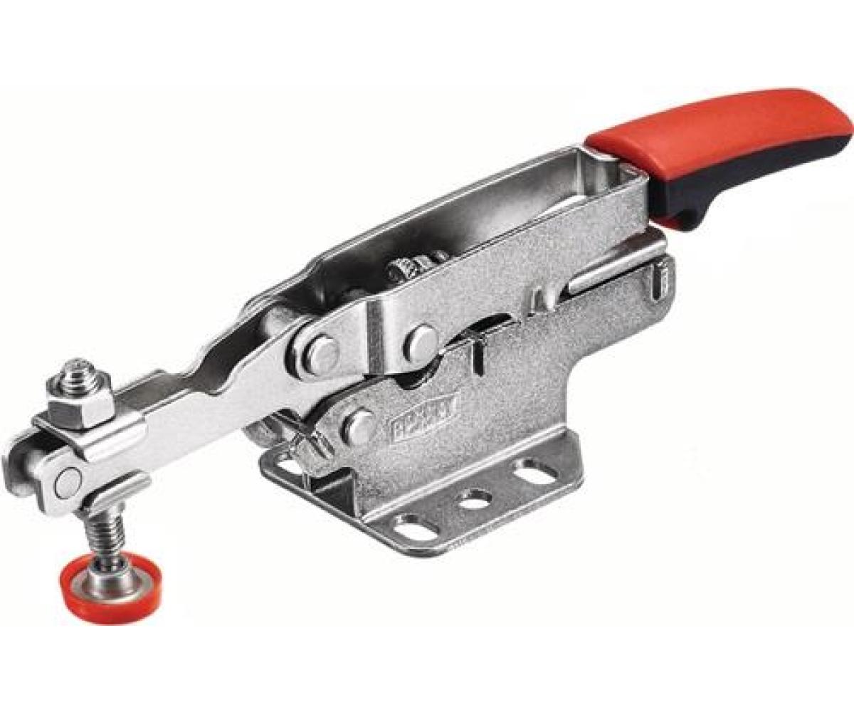 automatische stufenlose Anpassung der Spannhöhe bis 35 mm bei annähernd gleicher Spannkraft · regulierbare Spannkraft durch Einstellung der Stellschraube im Gelenk · abnehmbare Schutzkappe an der Druckplatte · Lochmuster der Grundplatte für mm und inch passend · 2-Komponenten Kunststoffgriff