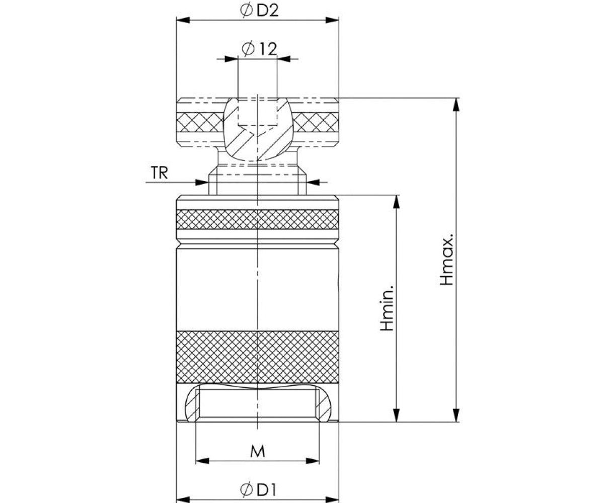 Weitere technische Eigenschaften · Tragfähigkeit max.: 350kN · Zentrierloch-Ø: 12mm · H max.: 300mm · D2: 80mm · TR: 65 x 10mm · H min.: 190mm · D1: 100mm · Schraubbock Nr.6400 · Gr.300 m.flacher Auflage · H.190-300mm AMF ·