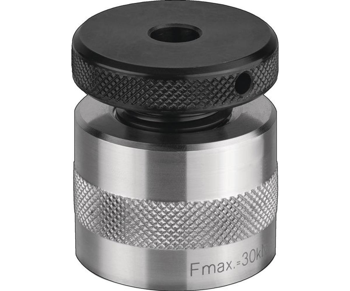 aus Aluminium · Spindel: Vergütungsstahl brüniert · Trapezgewinde selbsthemmend, mit Endsicherung · Unterteil: Aluminium 400 N/mm² Zugfestigkeit · für empfindliche Maschinentische sowie Richt- und Messplatten