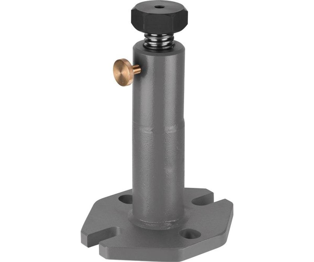 schwer · mit Messing-Feststellschraube · Spindel komplett: Vergütungsstahl, mit Trapezgewinde · Spindelkopf brüniert · Grundkörper: Vergütungsstahl, lackiert · durch die robuste Bauart funktionieren die Schraubböcke mit stufenloser Verstellbarkeit auch bei größter Beanspruchung sicher und genau