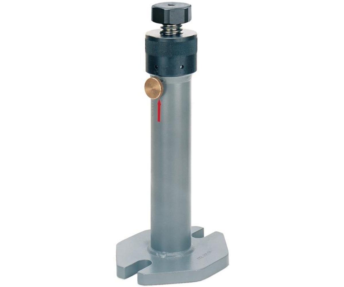 Anwendung: Dieser Schraubbock erlaubt sehr schnelles Verstellen und dann stufenloses Justieren im ganzen Höhenbereich. Durch eine 60°-Drehung des Betätigungsringes wird die Spindel festgehalten oder zur Schnellverstellung freigegeben. Außerdem kann die Spindel in der eingestellten Position mit der Feststellschraube sicher geklemmt werden. Passende Aufsätze für Schraubbock Nr. 6438 sind Nr. 6440, 6441, 6442, 6443 und Nr. 6445. · Hinweis: · Spindel festhalten, max. 6 kg · Feststellschraube lösen · Betätigungsring verdrehen · Wunschhöhe einstellen Schraubbock nicht unter Belastung verstellen