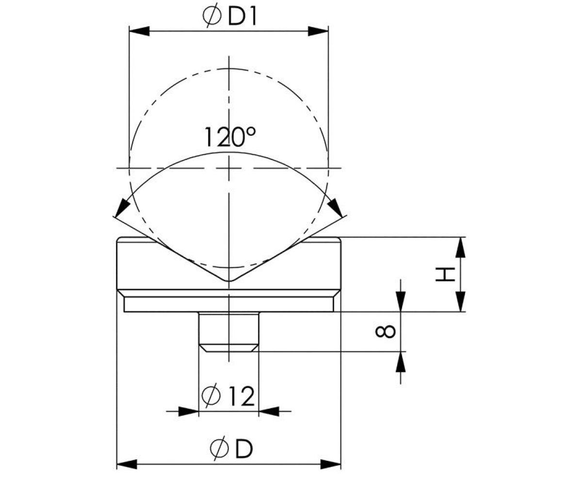 Weitere technische Eigenschaften · Einsteckzapfen-Ø: 12mm · D: 65mm · H: 30mm · D1: min. 22 mm / max. 100 mm · Schraubbockaufsatz · Nr.6441 · Einsteckzapfen-D.12mm ·