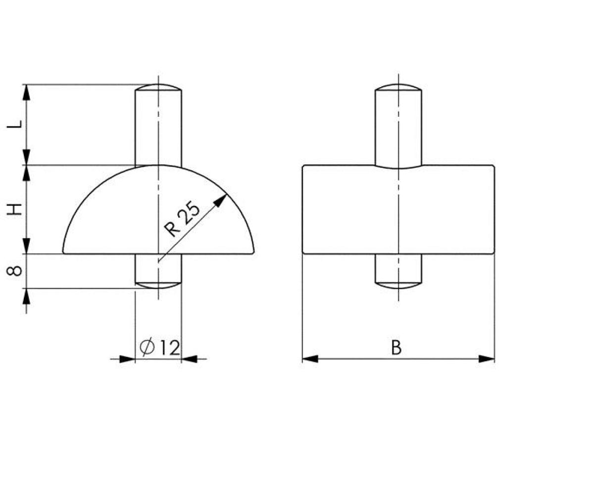 Weitere technische Eigenschaften · Einsteckzapfen-Ø: 12mm · L: 19mm · B: 50mm · H: 23mm · Schraubbockaufsatz · Nr.6444 · Einsteckzapfen-D.12mm ·