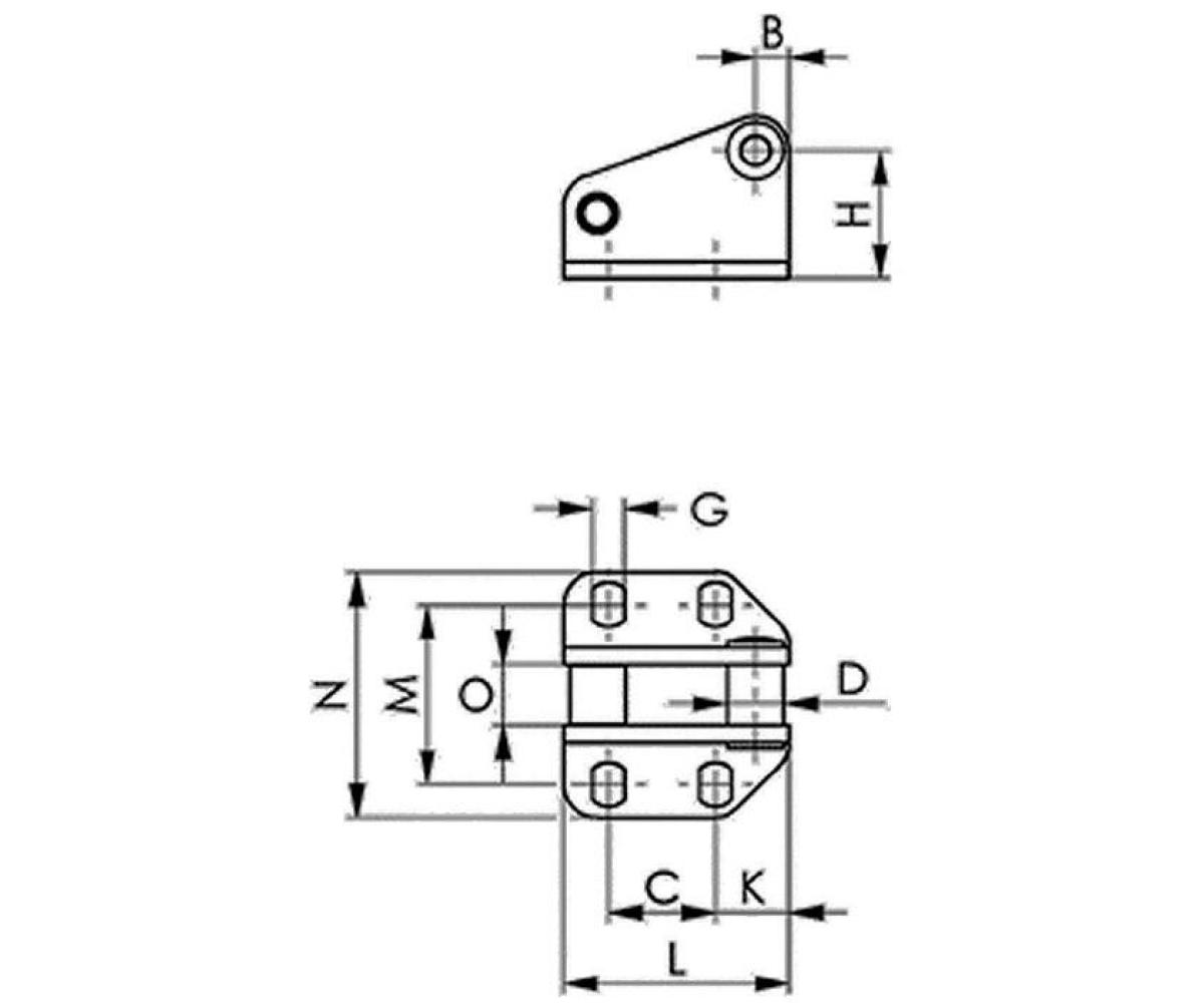 Weitere technische Eigenschaften · Länge: 40mm · C: 19mm · D: 10mm · G: 5,5mm · L: 40mm · O: 10,9mm · B: 6mm · K: 13mm · M: 31,3-35,8mm · Höhe: 29mm · H: 22,7mm · N: 45mm · Gegenhalter Nr.6847G Gr.3 · verz.AMF ·