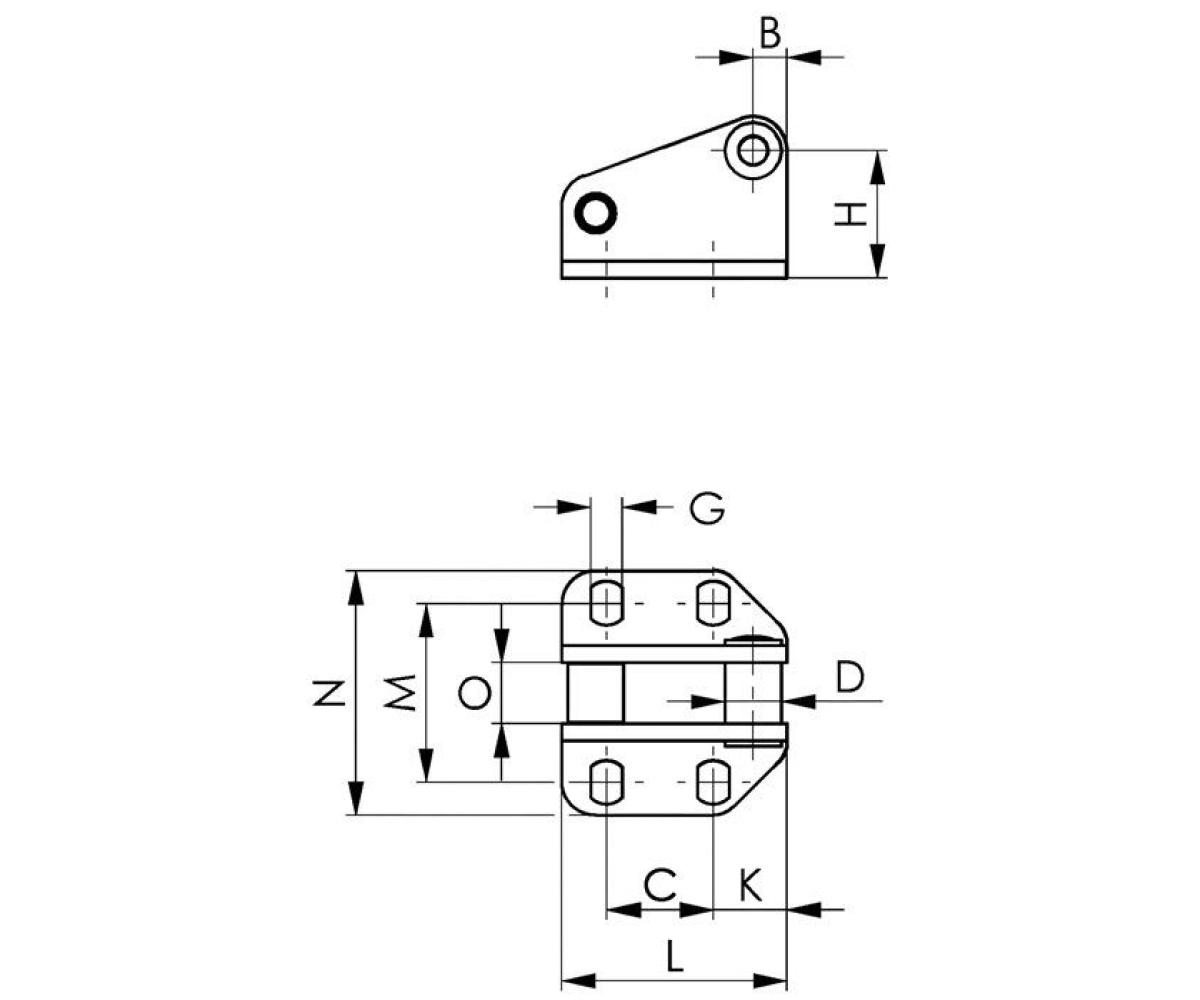 Weitere technische Eigenschaften · Länge: 40mm · C: 19mm · D: 10mm · G: 5,6mm · L: 40mm · O: 10,9mm · B: 6mm · K: 13mm · M: 31,3-35,8mm · Höhe: 29mm · H: 22,7mm · N: 45mm · Gegenhalter Nr.6847GNI · Gr.3 VA AMF ·